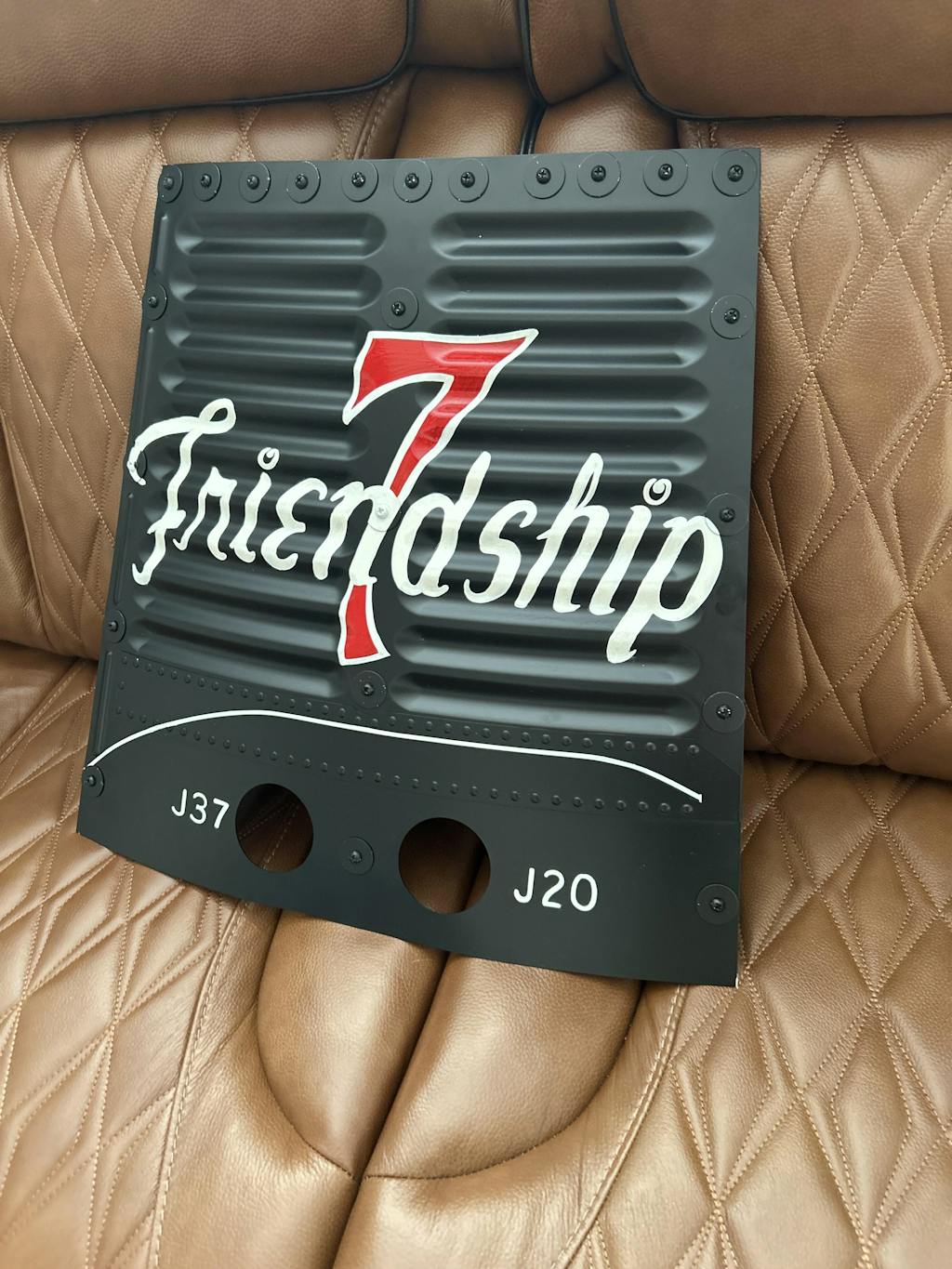 Inspired by Cece Bibby, the original artist who painted Friendship 7, Aurora 7, & Sigma 7.  Using a local, 50-year veteran sign painter, we are hand painting each nose art shingle EXACTLY as it was painted by Cece in the 1960s.  Each shingle is designed to look like the originals in every way:  exactly as if was painted then removed from the spacecraft: seam lines, bolt & washers hardware, and all!